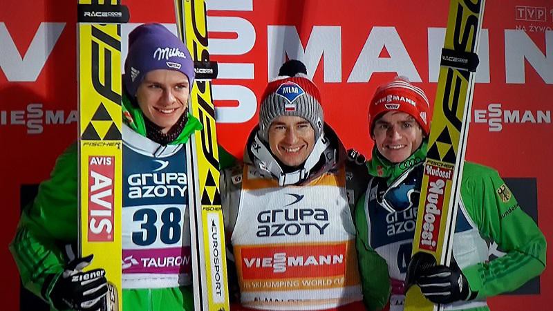 Niedzielny konkurs indywidualny w Zakopanem był czwartą z rzędu wygraną Kamila Stocha (fot. z transmisji TVP 1)
