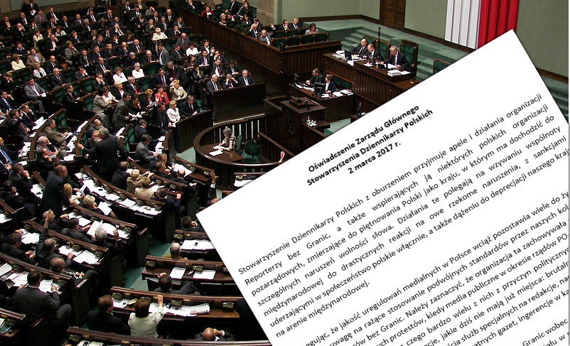 Stowarzyszenie Dziennikarzy Polskich z oburzeniem przyjmuje apele i działania organizacji Reporterzy bez Granic, a także wspierających ją niektórych polskich organizacji pozarządowych, zmierzające do piętnowania Polski jako kraju, w którym ma dochodzić do szczególnych naruszeń wolności słowa. (…) Działania te polegają na wzywaniu wspólnoty międzynarodowej do drastycznych reakcji na owe rzekome naruszenia, z sankcjami uderzającymi w społeczeństwo polskie włącznie, a także dążeniu do deprecjacji naszego kraju na arenie międzynarodowej – napisali przedstawiciele Zarządu Głównego SDP.