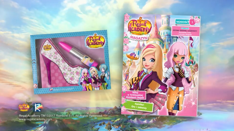 Uwielbiane na całym świecie zarówno przez dzieci, jak i dorosłych klasyczne postacie bajek: Kopciuszek, Roszpunka, czy Bestia doczekały się swoich potomków. Wnuczka Kopciuszka Rose to główna bohaterka nowego serialu telewizyjnego Regal Academy emitowanego na kanale dziecięcym Nickelodeon. Teraz również na łamach pisma „Regal Academy Magazyn” dzieci będą mogły śledzić losy nowej uczennicy i jej przyjaciół z Królewskiej Akademii Bajek – szkoły, którą zarządzają najbardziej znane baśniowe rodziny. Smoki, dużo humoru, niezwykły klimat szkoły i bohaterka, z którą utożsamiają się dziewczynki oraz ciekawe połączenie kanonu bajek znanych od lat z nowoczesną opowieścią to zachęta do interesującej rozrywki.