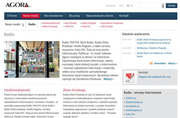 Pod domeną Radiopoznan.pl funkcjonuje strona Agory SA