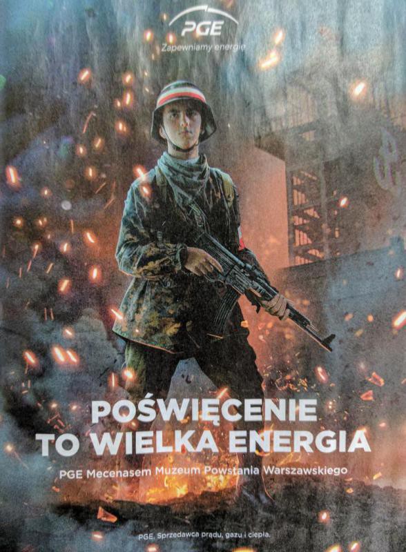 31 lipca br. PGE rozpoczęła kampanię reklamową, promując się wizerunkiem powstańca warszawskiego i hasłem "Poświęcenie to wielka energia", z dopiskiem "PGE Mecenasem Muzeum Powstania Warszawskiego". To wywołało oburzenie, m.in. wśród dziennikarzy, którzy komentowali w mediach społecznościowych. "Nie ma już żadnych granic, a słowo zażenowanie na pewno jest nieznane PGE" – napisał Patryk Michalski, dziennikarz RMF FM.