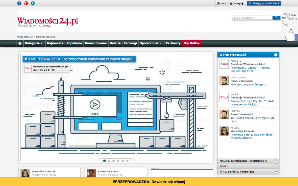 ”Internet i świat zmieniły się w ciągu tych 11 lat, gdy otwieraliśmy Wiadomości24. Dziennikarstwo obywatelskie nie jest dziś tym samym, więc nadszedł czas na zmiany. Dlatego chcemy Wam podziękować za Wasze zaangażowanie w budowanie serwisu i poinformować, że zdecydowaliśmy o zakończeniu działania w tym miejscu. Za trzy miesiące zaprosimy Was pod nowy adres i do współpracy w nowej formule, która – jesteśmy o tym przekonani – znacznie lepiej odpowie na potrzebę dzielenia się informacjami, jak i dotarcia z nimi do zainteresowanych odbiorców” - czytamy w komunikacie zamieszczonym na stronie Wiadomości24.pl.