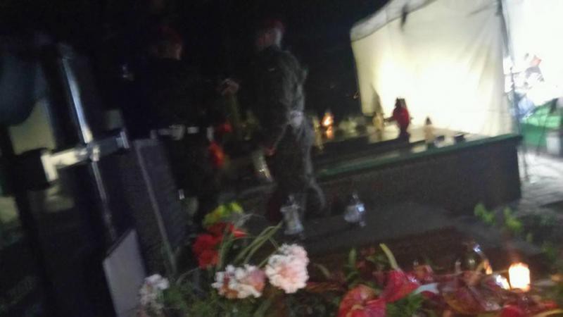 „Cały wielki cmentarz przy Ogrodowej był obstawiony przez żandarmerię, wokół była też masa policji. Szliśmy w 11 osób. Po 22.00 zaczęliśmy się przedzierać przez sąsiedni cmentarz prawosławny, powoli, jakby to były podchody, chwilami na czworakach. Było mokro, bo o 20.00 lunęło, potem na szczęście deszcz tylko kropił. Przeskoczyliśmy przez mur tak wysoki, że trzeba było korzystać z gałęzi drzewa. Kamerzysta niósł kamerę, ja tarabaniłem się z torbą z obiektywami i zapasowymi bateriami. Skradaliśmy się jak dzieciaki, harcerze. Kilkaset metrów drogi zajęło nam dwie godziny. Alejki były oświetlone, chowaliśmy się za nagrobkami. Od 00.40 czekaliśmy blisko grobu. O 01.00 przeskoczyliśmy ostatni mur, na tę godzinę zapowiedziano ekshumację. Włączyliśmy kamerę, jej światło nas zdradziło, od razu podskoczyło czterech żandarmów – relacjonował Robert Kowalski.
