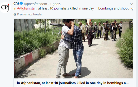 W poniedziałkowych zamachach zginęło więcej dziennikarzy, niż w jakimkolwiek innym ataku od czasu upadku talibskiego rządu (fot. Committee to Protect Journalists / Twitter.com/pressfreedom
