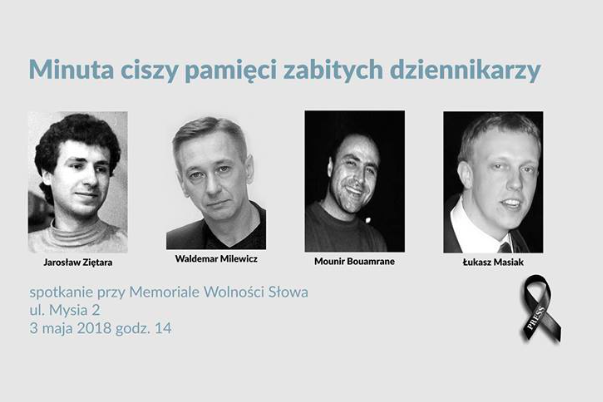 Pod Memoriałem Wolnego Słowa przy ul.Mysiej 2 w Warszawie odbędzie spotkanie oraz minuta ciszy pamięci zabitych dziennikarzy. Początek o godz. 14.