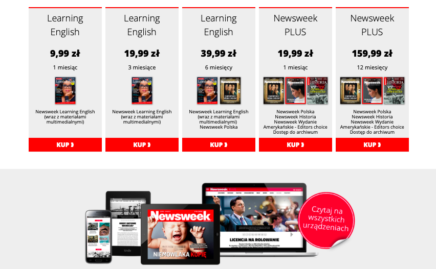 Dostęp do strony internetowej przystosowanej do czytania treści z tygodnika „Newsweek”, „Newsweek Historia” oraz wydań specjalnych. Jeden login daje dostęp do treści na komputerze, smartfonie i tablecie.