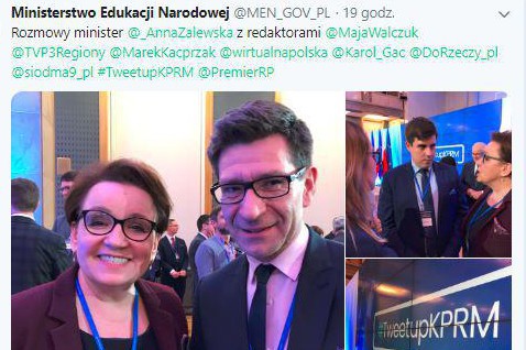 Na twitterowy profil Ministerstwa Edukacji Narodowej wstawiono zdjęcie, na którym z uśmiechniętą minister Anną Zalewską pozuje Marek Kacprzak z WP.pl.Zresztą dziennikarze sami chwalili się spotkaniem z ministrami. Selfie z ministrem Markiem Suskim udostępnił Jacek Nizinkiewicz z "Rzeczpospolitej".