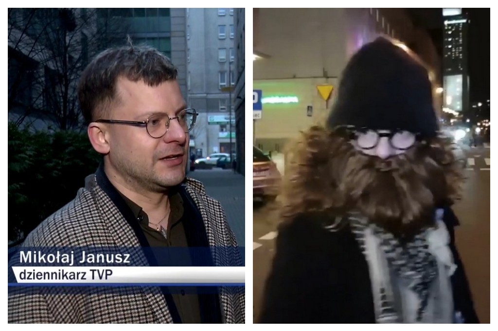 „Pan Mikołaj Janusz, performer i dokumentalista, znany z prześmiewczych materiałów zamieszczanych w sieci, uczestniczył w proteście przed TVP, aby zarejestrować materiał do swojego, internetowego programu. Nie był tam wysłany przez Telewizyjną Agencję Informacyjną i nie reprezentował TVP.