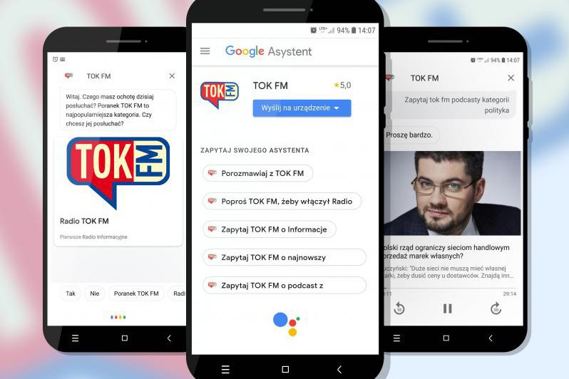 Agora poinformowała, że radio Tok FM jest pierwszą polską rozgłośnią, której można słuchać na żywo dzięki Asystentowi Google.