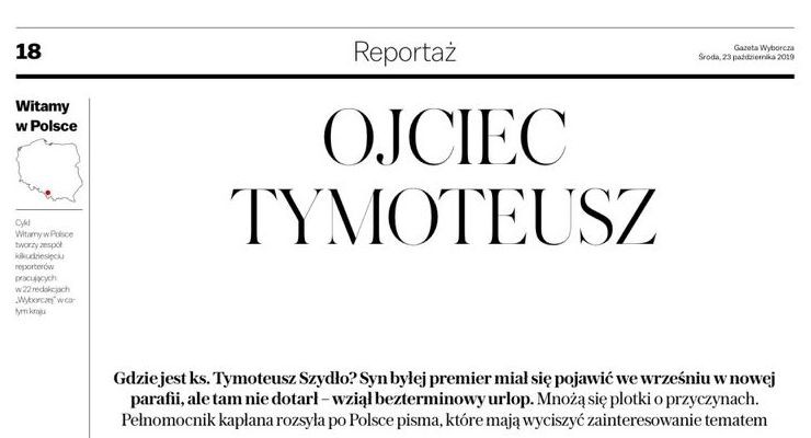 Szybko oświadczenie mecenasa Zaborowskiego opisały wszystkie największe media w Polsce. W tym Polsatnews.pl, Rmf24.pl, Wp.pl, Dziennik.pl i "Gazeta Wyborcza". Ta ostatnio opublikowała reportaż pt. "Ojciec Tymoteusz". Można było w nim m.in. przeczytać, że "adwokat Maciej Zaborowski, pełnomocnik księdza, zaprzecza, jakoby Tymoteusz Szydło został ojcem (a była premier - babcią)".