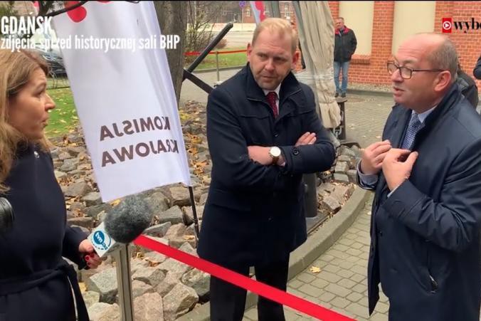 Do Sali BHP bez skutku próbowały dostać się dwie ekipy TVN 24 (screen: Trojmiasto.wyborcza.pl)