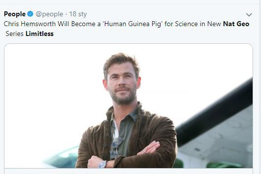 Chris Hemsworth w serialu National Geographic ma wystąpić w roli królika doświadczalnego (fot. Twitter.com/People)