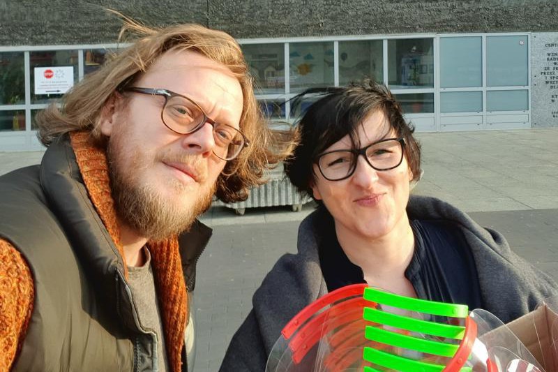 Michał Wilczyński, digital investment manager, i Ewa Zakrzewska, innovation and curiosity leader w Publicis Groupe Polska, przekazują maseczki do CZD (fot. materiały prasowe)