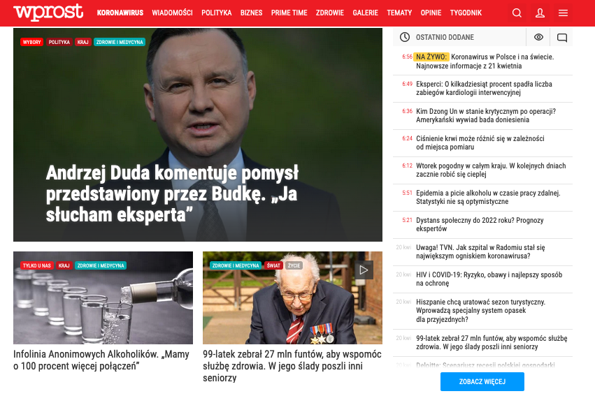Na razie teksty dziennikarzy tygodnika trafiają do serwisu Wprost.pl (screen: Wprost.pl)