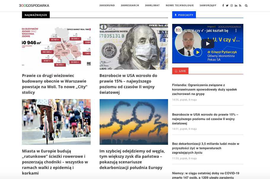 Serwis 300gospodarka.pl ruszył z cyklem podcastów "Gospodarka na nowo". Strona serwisu została odświeżona i zdaniem redakcji jest teraz bardziej przejrzysta oraz lepiej przygotowana pod SEO.