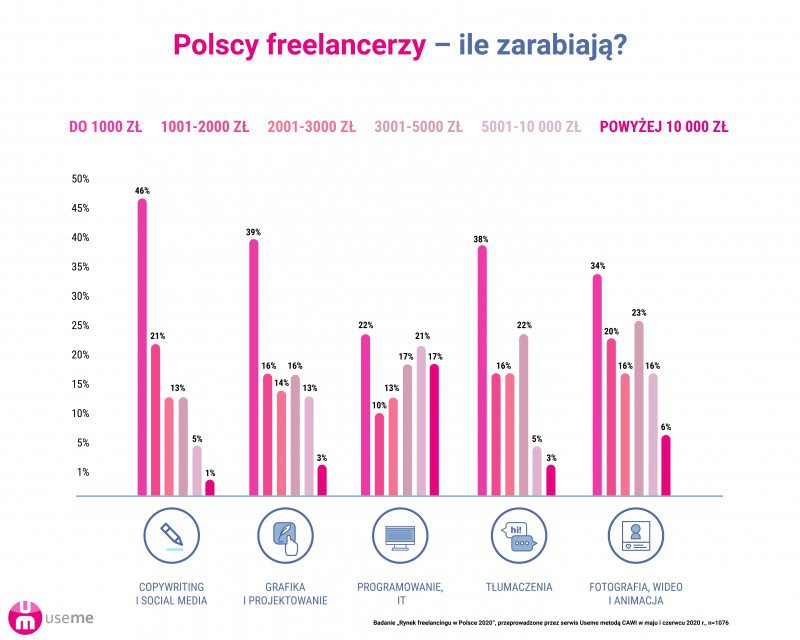 Useme.com jest platformą pracy zdalnej i narzędziem do jej rozliczania. Badanie zostało przeprowadzone w czerwcu 2020 roku metodą CAWI. Wzięło w nim udział 1076 freelancerów.