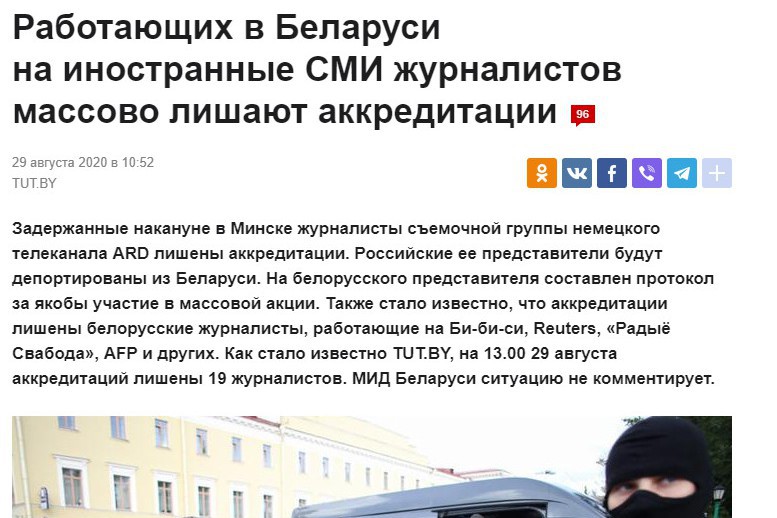 Niezależny serwis Tut.by podał, że akredytacje odebrano także białoruskim dziennikarzom pracującym dla BBC, Reutersa, AFP, Radia Swoboda i innych redakcji. Ministerstwo Spraw Zagranicznych Białorusi nie komentuje tej sprawy. Oficjalny Białoruski Związek Dziennikarzy (BSŻ) zaapelował do władz o szybki zwrot akredytacji dziennikarzom mediów zagranicznych.
