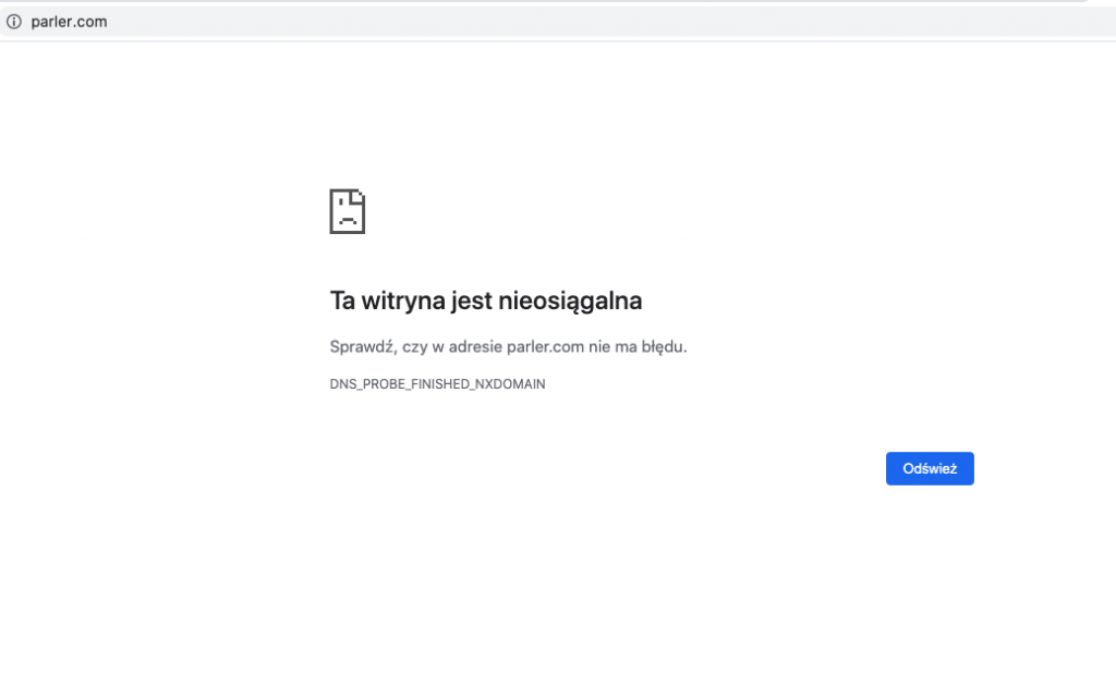 Po tym, jak Parler został zablokowany zarówno w sklepach z aplikacjami Apple, jak i Google z powodu braku reakcji na posty propagujące przemoc witryna mediów społecznościowych jest teraz całkowicie offline w wyniku wyrzucenia jej przez Amazona ze swoich serwerów. Oficjalna witryna Parler wyświetla błąd, podczas gdy jej aplikacja wyświetla błędy sieciowe i nie może załadować treści.