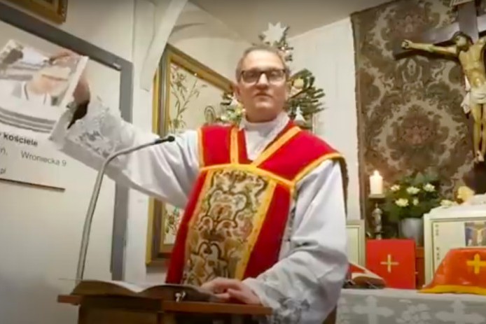 Mówiąc o Piotrze Żytnickim, ks. Michał Woźnicki podkreślał, że pracuje on w "gazecie żydowskiej dla Polaków" (screen YouTube.com)