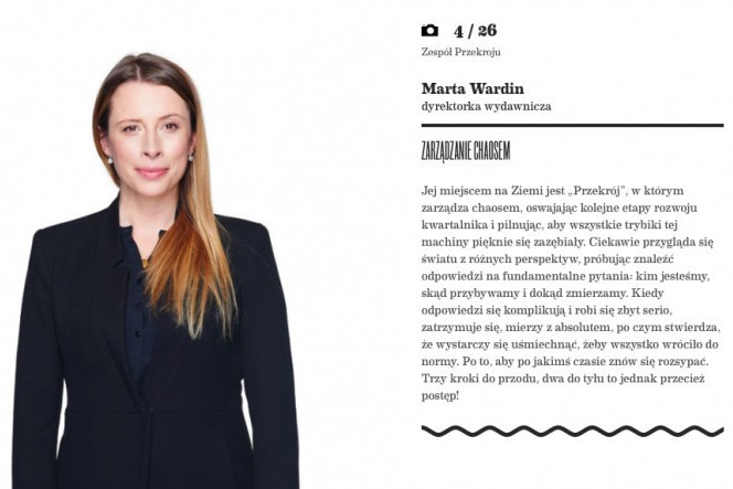 Marta Wardin nie zasiada już w zarządzie Fundacji Przekrój. Pozostaje dyrektor wydawniczą.