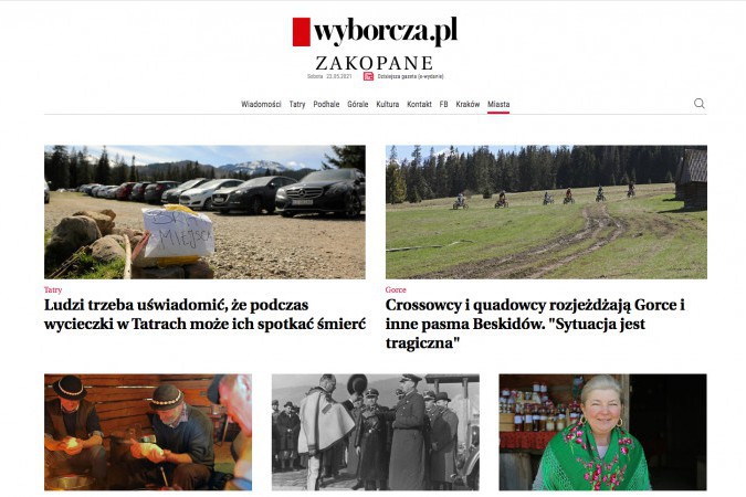 Serwis lokalny "GW" w Zakopanem pisał o pracy juhasów oraz przemocy domowej (screen Zakopane.wyborcza.pl)