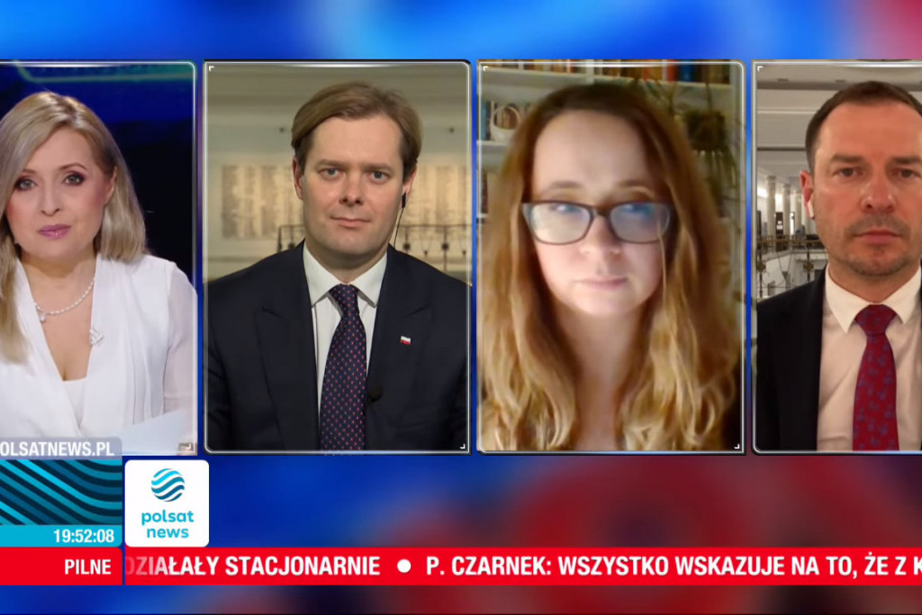 TVN 24 i TV Republika rozmowy z gośćmi przeprowadzają zdalnie, a Polsat i TVP ograniczyły liczbę osób zapraszanych do studia (screen: Polsatnews.pl)