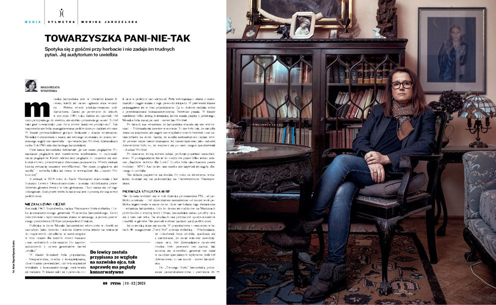 Monice Jaruzelskiej też to nie przeszkadza. – Format ma być taki, że moi goście spotykają się u mnie w domu przy herbacie, to spotkania człowieka z człowiekiem, który ma do mnie zaufanie. To nie jest formuła jak w TVN 24 czy TVP Info – mówi. Kiedy pytam, czy jej brak reakcji na wypowiedzi rozmówców w programie nie sprawia, że ich poglądy nie są poddane krytyce i konfrontacji, odpowiada: – Czasem tak, a czasem pozostawienie w programie osoby, która jest skłonna do monologowania, sprawia, że sama się obnaża.