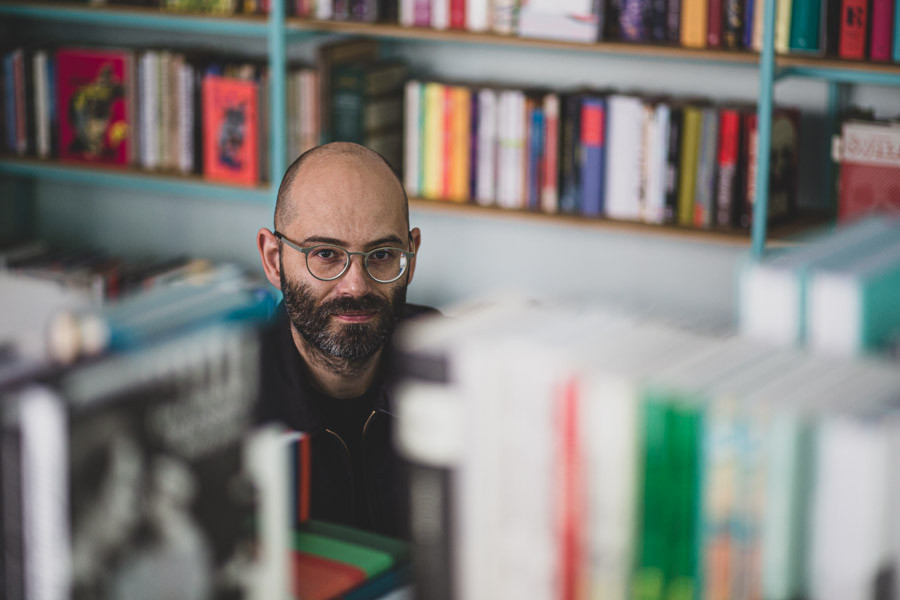 "Ja zapachem książek nie upajam się za bardzo" - mówi Przemek Dębowski (fot. Jeremi Astaszow/Astashow Studio)