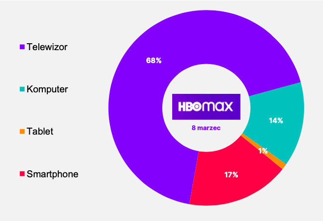 Z danych dotyczących osób oglądających HBO Max w streamingu wynika, że w podziale na ekrany 68 proc. oglądalności platformy 8 marca stanowił telewizor. Kolejne były: telefon (17 proc.), komputer (14 proc.) i tablet (1 proc.).