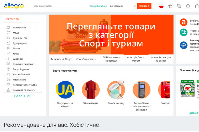 Platforma handlowa online Allegro udostępniła ukraińską wersję interfejsu. Chce w ten sposób dotrzeć do Ukraińców mieszkających w Polsce.