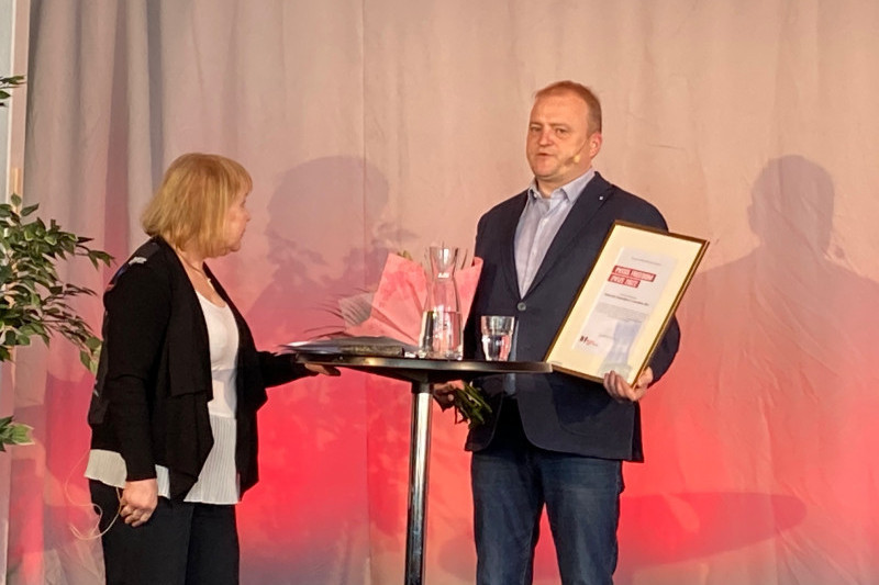 Aleh Ahiejeu, wiceszef Białoruskiego Stowarzyszenia Dziennikarzy, odebrał w Sztokholmie Press Fredom Prize (fot. DAN)