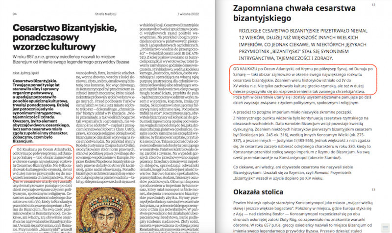 Internauci szybko zorientowali się, że tekst jest niemal kopią publikacji, jaka pojawiła się w 2001 roku w piśmie "Przebudźcie się!", wydawanym przez Chrześcijański Zbór Świadków Jehowy. W polskim biurze Świadków Jehowy przyznają, że ustalenie autora tekstu "Zapomniana chwała cesarstwa bizantyjskiego" z 2001 roku jest dziś niemożliwe ("Nigdy nie podpisywaliśmy autorów" – słyszymy), ale potwierdzają, że taki tekst się ukazał.