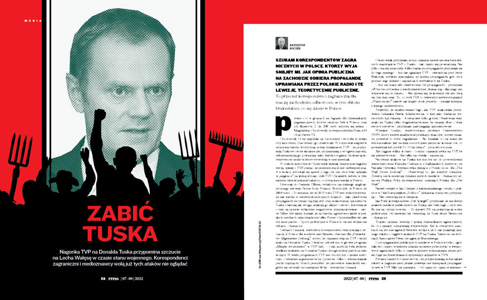 Dzwonię do Daniela Tillesa, redaktora naczelnego anglojęzycznego serwisu Notes from Poland. Brytyjczyk, w Polsce od 2004 roku. – To smutne, że od 2015 roku TVP jest wykorzystywana jak media w niedemokratycznych krajach – jako platforma propagandy na temat rządzących oraz atakowania oponentów. Tuska traktują jak wroga, atakują go silnie i celowo. Informacje o nim są prawie wyłącznie negatywne, zmanipulowane – mówi Tilles. Ale zaraz dodaje, że za bardzo agresywny język w polskich mediach odpowiada nie tylko Prawo i Sprawiedliwość, ale też inne partie. – Spory polityczne w Polsce to raczej wojna niż debata – tłumaczy.