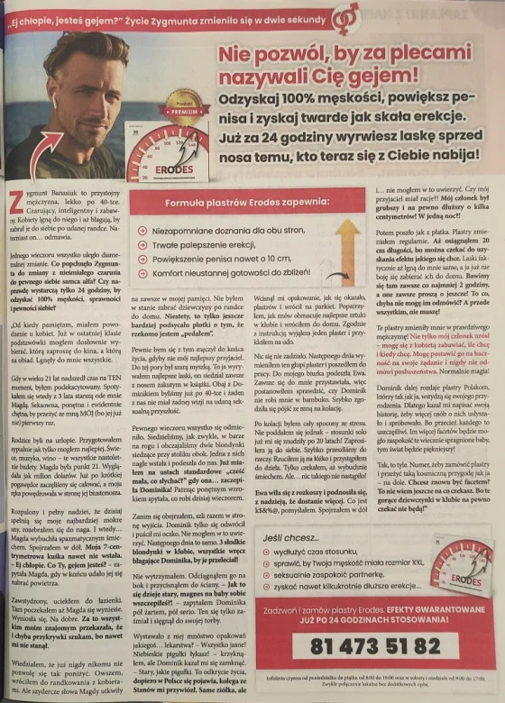 "Nie pozwól, by za plecami nazywano cię gejem" – brzmi hasło pełnokolumnowej reklamy opublikowanej w "Kropka TV" – tygodniku telewizyjnym, kolportowanym w sieci handlowej Biedronka.
