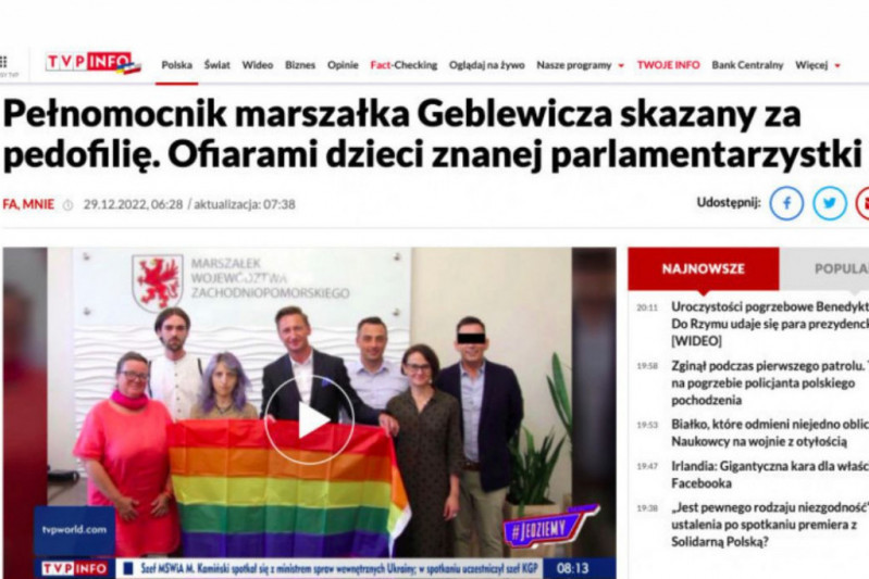 Materiały ujawniające dane ułatwiające identyfikację ofiar ukazały się – obok Radia Szczecin – także na portalu TVP Info (screen: TVP Info)