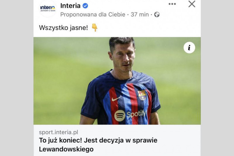 Oczywiście tu chodziło co najwyżej o koniec kary za kartki, ale brzmiało poważnie – jeden z wielu przykładów niewinnych clickbaitów. – Robią tak niemal wszyscy – przyznają eksperci (screen: FB/Interia)