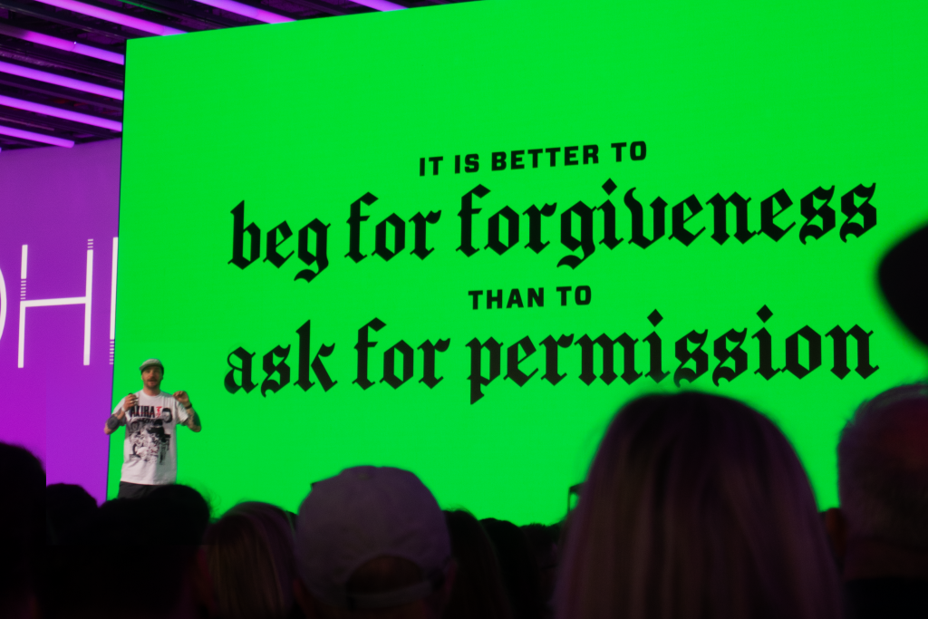Pierwszy dzień festiwalu wypełniony był po brzegi inspirującymi wykładami i warsztatami. Topowi twórcy zastanawiali się, co jest najlepszą pożywką dla kreatywnego umysłu. Zachęcali do wychodzenia z własnej strefy komfortu (lol), szukania własnej ścieżki, etc. Intensywność i obfitość dziejących się jednocześnie wydarzeń sprawia, że napisanie relacji mieliśmy już powierzyć sztucznej inteligencji. Tak dobrze sobie poradziła, że zamiast siedzieć na afterparty, oblewając się szampanem, piszemy sobie ten tekst od zera.