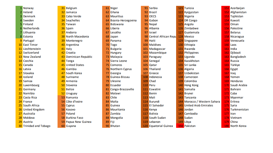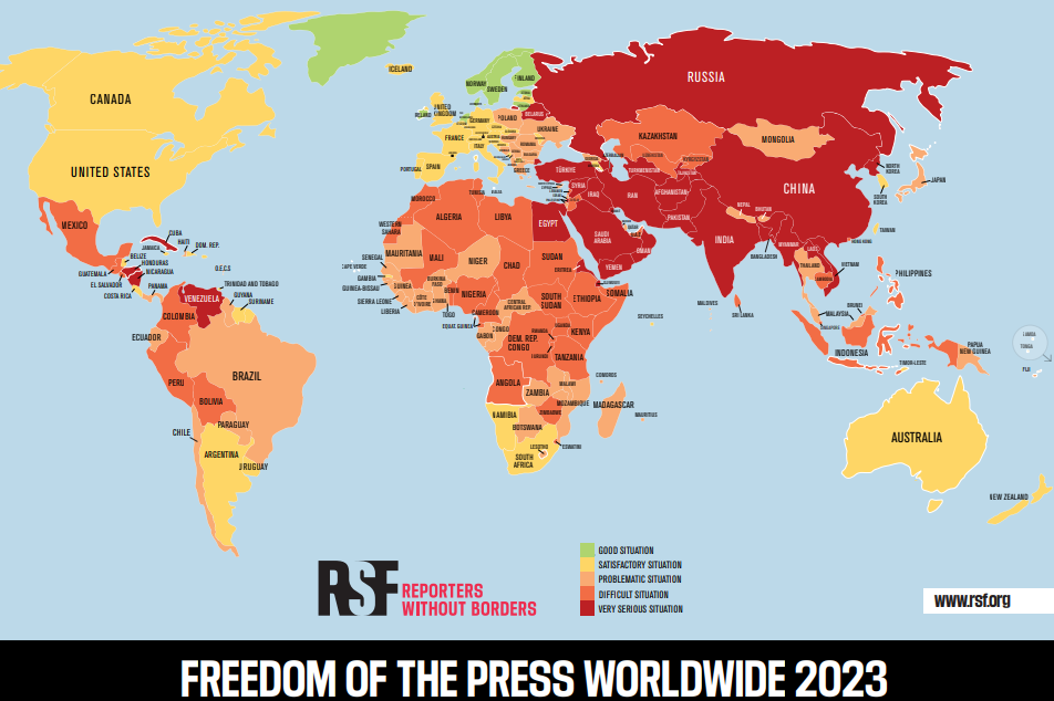 Wyniki Światowego Indeksu Wolności Prasy 2023 (World Press Freedom Index)