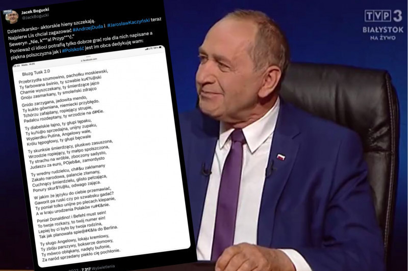 Senator Jacek Bogucki nie pierwszy raz używa obraźliwej retoryki w stosunku do Donalda Tuska. Na swoim profilu twitterowym opublikował 4 czerwca wiersz poświęcony szefowi PO, a złożony głównie z inwektyw.