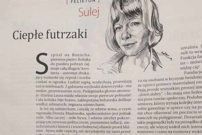 W felietonie pt. „Ciepłe futrzaki” Karolina Sulej pisze o tym, że opłaca się na co dzień być życzliwym dla innych. „Ja też się uśmiecham, i myślę, że wbrew temu, o czym rapowała Dorota Masłowska, społeczeństwo jest jednak miłe. Albo raczej – miłe bywa. I wbrew niezbyt pokrzepiającym newsom politycznym, poziomowi inflacji, nieuchronności śmierci i wszechobecnej obawie przez bliźnim – bywa miłe częściej, niż decydujemy się sami przed sobą przyznać” – pisze Karolina Sulej.
