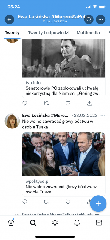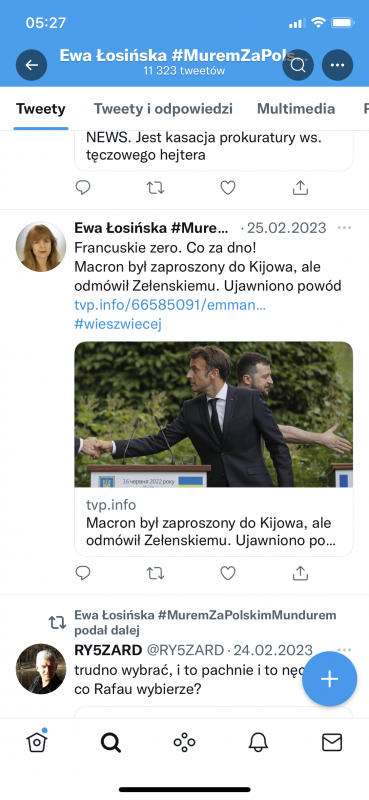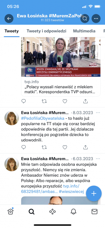 Łosińska aktywnie udziela się w mediach społecznościowych. Często zamieszczała obraźliwe wpisy w mediach społecznościowych na temat opozycji i krytyków obozu władzy, a także cytowała media rządowe i wspierające obecną władzę. Wczoraj po południu zlikwidowała swoje konto na Twitterze, ale zdążyliśmy skopiować jej wpisy.