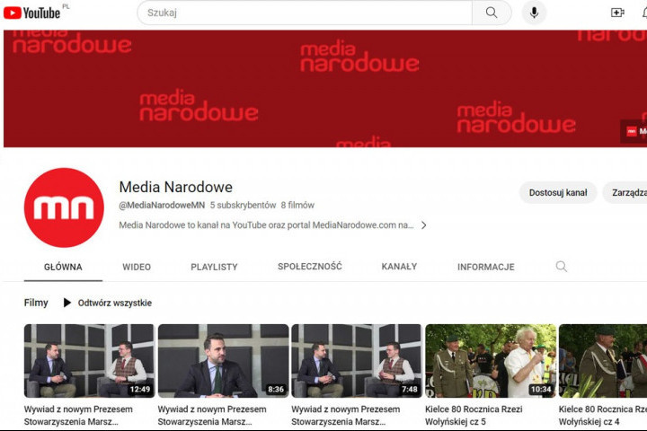 Nowy kanał Media Narodowe nie cieszy się popularnością, stary został zamknięty w lutym za naruszenie reguł YouTube (screen: YouTube/Media Narodowe)