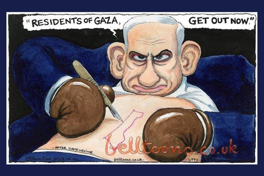 "The Guardian" odmówił zamieszczenia karykatury, dowodząc, że ma ona antysemicki charakter. Na rysunku Netanjahu w rękawicach bokserskich usuwa skalpelem mapę Strefy Gazy ze swojego brzucha. Obraz jest inspirowany słynną kreskówką Davida Levine’a (1926-2009) z 1966 roku na temat Lyndona B. Johnsona, 36. prezydenta Stanów Zjednoczonych, w związku z wojną w Wietnamie. Mówiono też o nawiązywaniu do postaci szekspirowskiego lichwiarza Shylocka z "Kupca weneckiego", co nie było porównaniem pozytywnym.