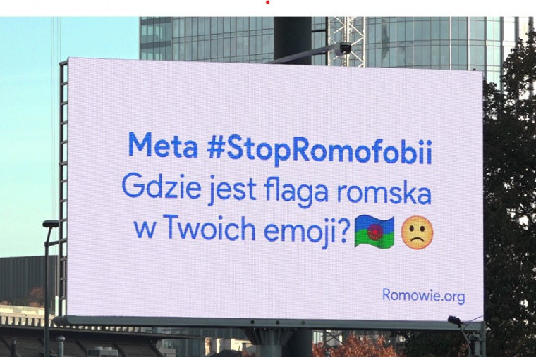 Na ulicach Warszawy pojawiły się billboardy nawołujące Google, Metę i Netflix do poprawy ich usług i produktów. Tak, by były one bardziej inkluzywne oraz uwzględniały osoby o narodowości romskiej. Hasło przewodnie kampanii to #StopRomofobii. Apel do Mety o uzupełnienie biblioteki emoji o romską flagę został wyświetlony przy Rondzie Daszyńskiego.