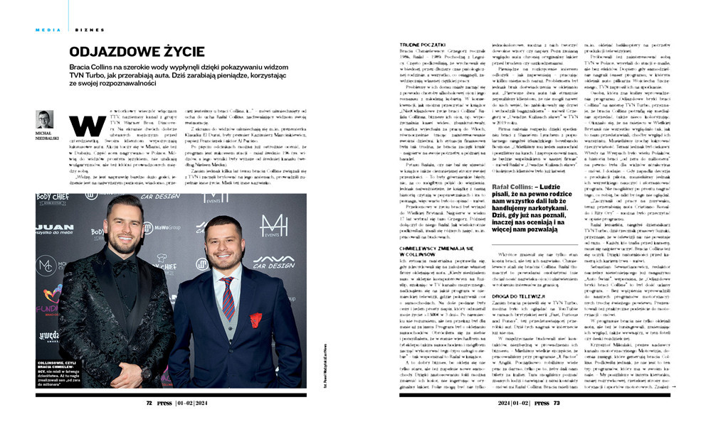 Rafał Jemielita, niegdyś dziennikarz TVN Turbo, dziś rzecznik prasowy Suzuki, przyznaje, że w telewizji nic nie powstaje od razu. – Każdy, kto trafia przed kamerę, musi się najpierw uczyć. Bracia Collins też się uczyli. Dzięki naturalności przed kamerą ich kariera trwa – mówi.