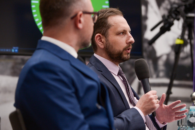 W czasie kampanii wyborczej do Parlamentu Europejskiego Jacek Gądek – wtedy w serwisie Gazeta.pl – debatował w Centrum Prasowym PAP w Warszawie (fot. PAP/Marcin Obara)