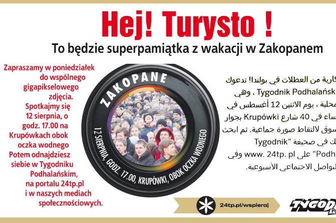 "Tygodnik Podhalański" przygotował akcję dla turystów odwiedzających Zakopane. Zaprasza do gigapikselowego pamiątkowego zdjęcia również przyjeżdżających z zagranicy.