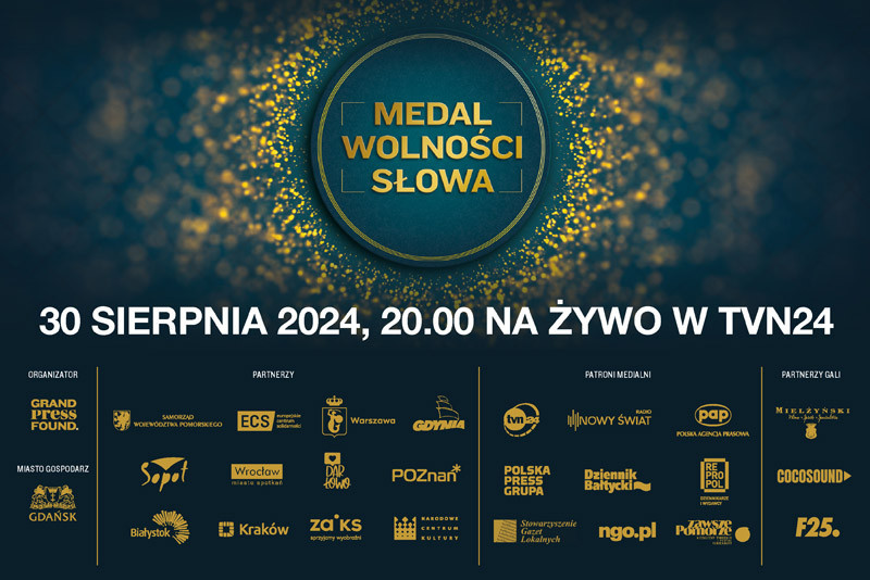 Dziś gala Medalu Wolności Słowa. Transmisja w TVN 24 i na Facebooku