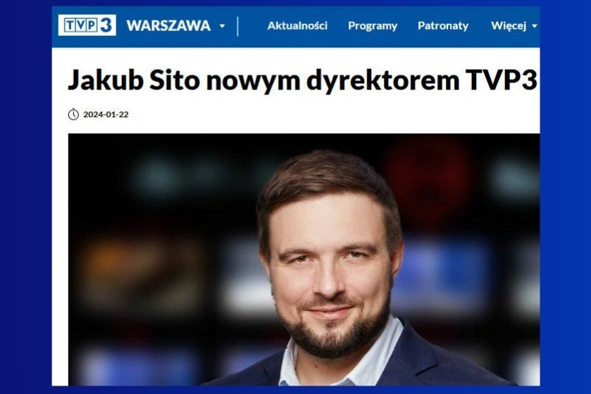 Dyrektor TVP 3 Warszawa Jakub Sito otrzymywał we wrześniu 2024 roku najwyższe wynagrodzenie spośród osób kierujących ośrodkami terenowymi TVP.