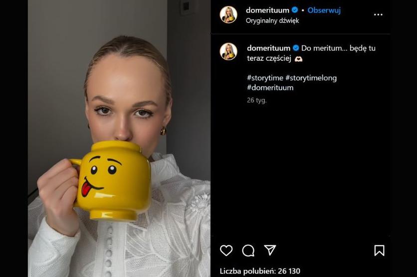 Julia Sierakowska: – Dziś wiele osób w sieci postrzega mnie jako blondyneczkę, która siorbie z żółtego kubeczka. Umiejętnie balansuję jednak między tym, co poważne, a tym, co lekkie (screen: Instagram/@domerituum)